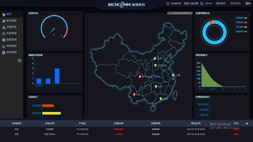 一、産品概況 凝智IP Power Plus多網點綜合管理(lǐ)平台,可對(duì)機房電力、空(kōng)調、環境等數據進行精确、快(kuài)速、可靠的監控管理(lǐ),及時(shí)響應機房内各種事(shì)件并通知(zhī)機房管理(lǐ)人員,爲機房的安全運營提供持續可靠的支撐。 系統具有豐富的接口,可快(kuài)速接入動力、空(kōng)調、環境、安防等其它子系統。 二、系統架構